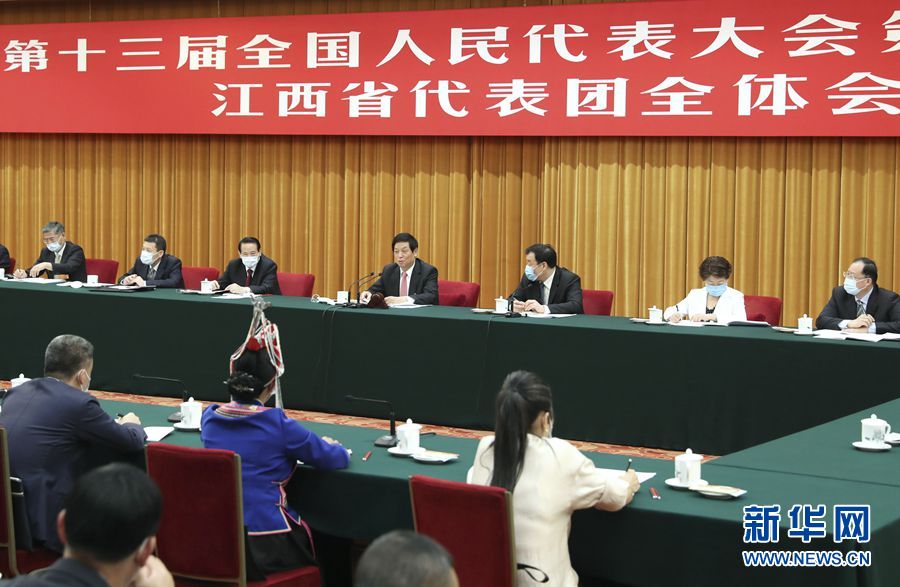 5月22日,中共中央政治局常委、全國人大常委會委員長栗戰(zhàn)書參加十三屆全國人大三次會議江西代表團的審議。 新華社記者 丁林 攝