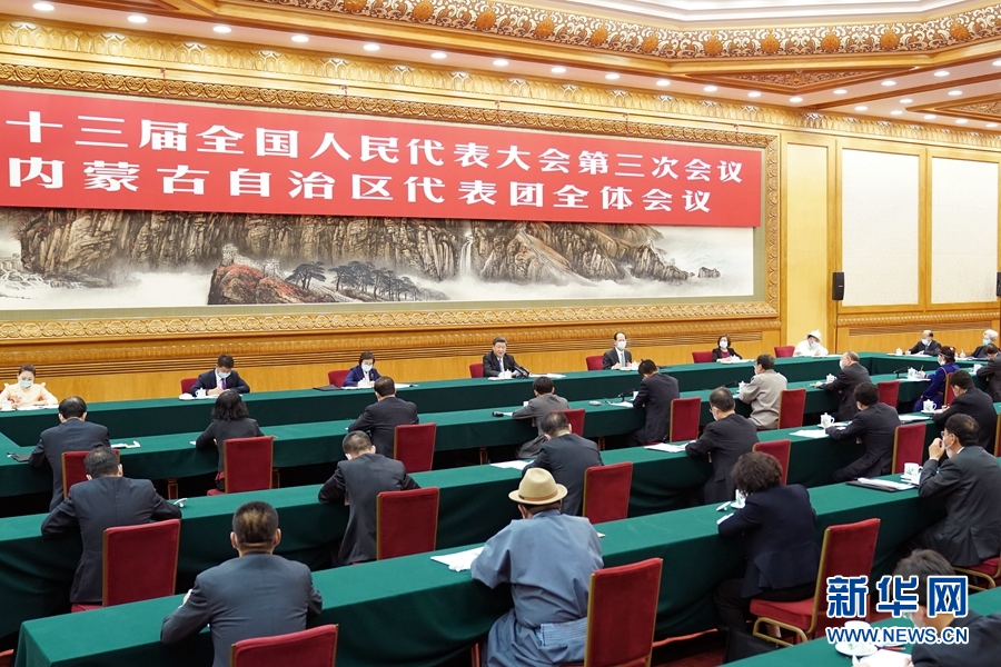 5月22日,中共中央總書記、國(guó)家主席、中央軍委主席習(xí)近平參加十三屆全國(guó)人大三次會(huì)議內(nèi)蒙古代表團(tuán)的審議。 新華社記者 鞠鵬 攝