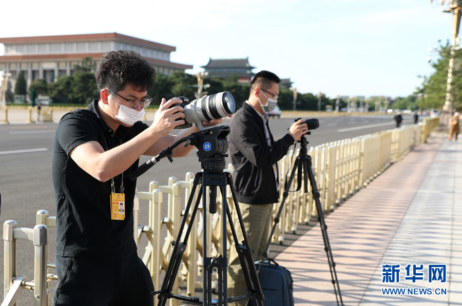 ??? 5月24日,全國(guó)政協(xié)十三屆三次會(huì)議第二次全體會(huì)議在人民大會(huì)堂舉行。圖為媒體記者在人民大會(huì)堂東門外拍攝。新華網(wǎng) 翟子赫 攝
