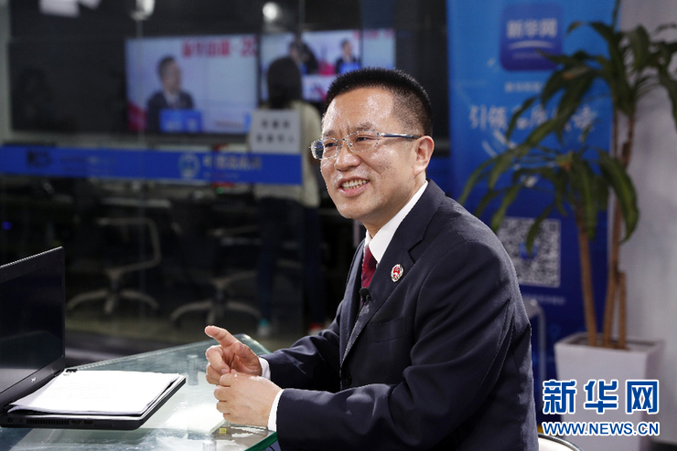 最高檢辦公廳主任、新聞發(fā)言人王松苗做客新華網(wǎng),解讀最高人民檢察院工作報告。陳杰攝