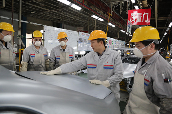 由于復(fù)工后人手不足,最忙碌的時候,楊祉剛要身兼四職,涉及多個車型崗位,一天最多要完成90臺汽車配件的焊裝。