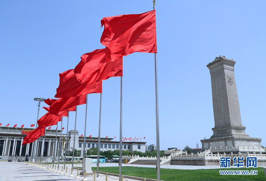 5月28日,第十三屆全國人民代表大會第三次會議在北京人民大會堂舉行閉幕會。這是天安門廣場上紅旗飄揚(yáng)。 新華網(wǎng) 翟子赫 攝