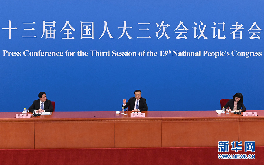 5月28日下午,十三屆全國(guó)人大三次會(huì)議在北京人民大會(huì)堂舉行記者會(huì),國(guó)務(wù)院總理李克強(qiáng)應(yīng)大會(huì)發(fā)言人張業(yè)遂的邀請(qǐng)出席記者會(huì),并回答中外記者提問(wèn)。 新華社記者 陳曄華 攝