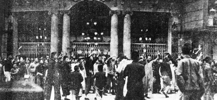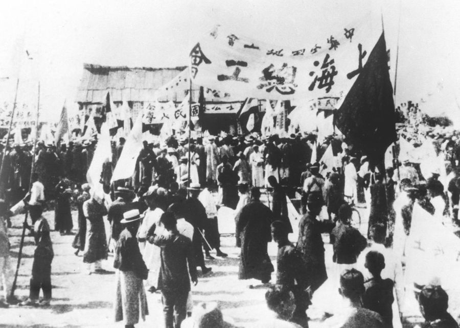 圖為五卅運動爆發(fā)時上??偣挠涡嘘犖?新華社圖片