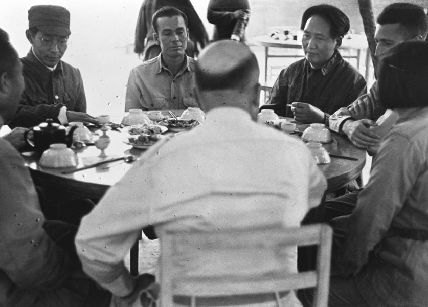 1944年6月,毛澤東設(shè)宴招待中外記者西北參觀團(tuán)。 新華社圖片