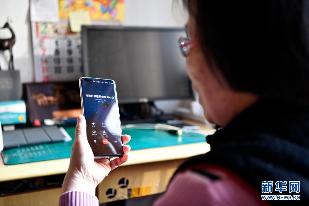 家住天津市河西區(qū)桃園街道的獨(dú)居老人在體驗(yàn)居家養(yǎng)老服務(wù)的智能外呼系統(tǒng)(2月9日攝)。新華社記者 趙子碩 攝