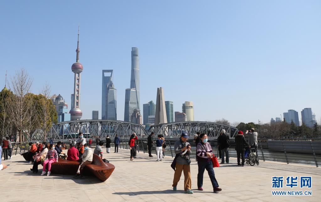 2月21日,人們在上海蘇州河邊漫步休閑。新華社記者 方喆 攝