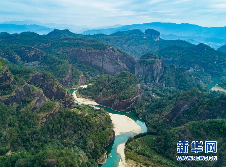 武夷山風(fēng)景名勝區(qū)內(nèi)的綠水青山(無人機(jī)照片,2021年1月3日攝)。新華社記者宋為偉攝