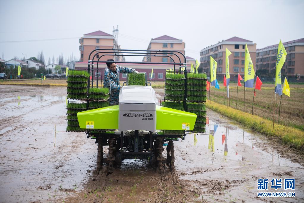 在湖南省益陽市沅江市草尾鎮(zhèn)沅江現(xiàn)代農(nóng)業(yè)技術研發(fā)基地,工作人員演示插秧機操作(2021年3月2日攝)。新華社記者 陳思汗 攝