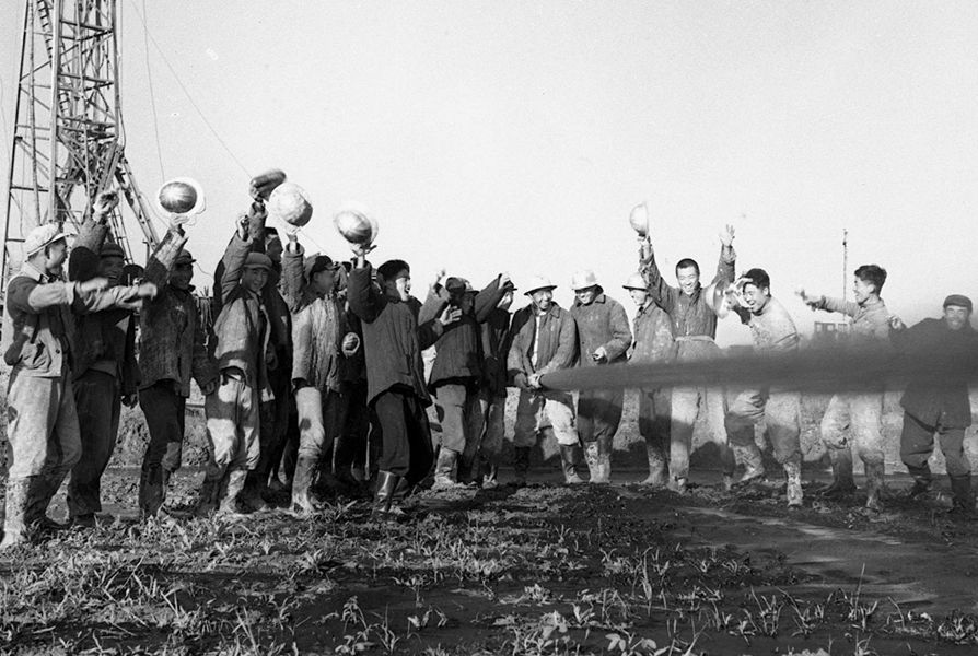 1963年,大慶油田建成。這是大慶油田工人在對(duì)一口油井進(jìn)行試噴。新華社圖片