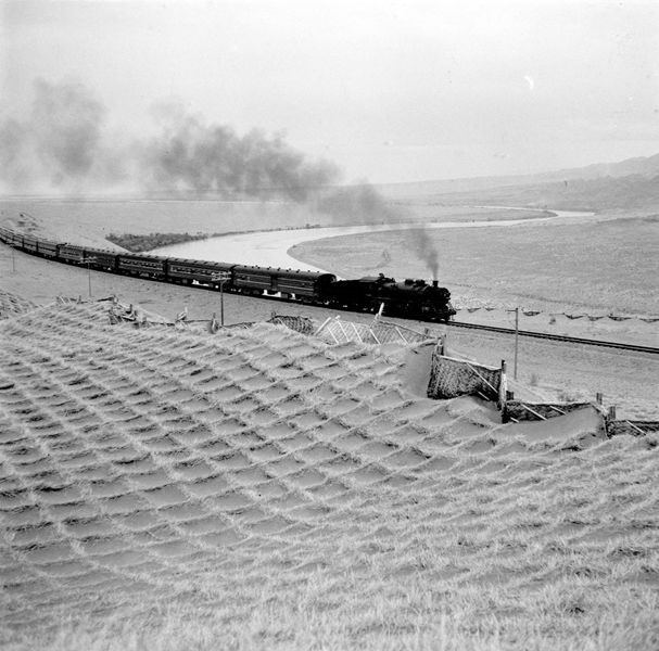 1958年8月1日,包蘭鐵路通車(chē)。這是列車(chē)通過(guò)沙坡頭。新華社圖片