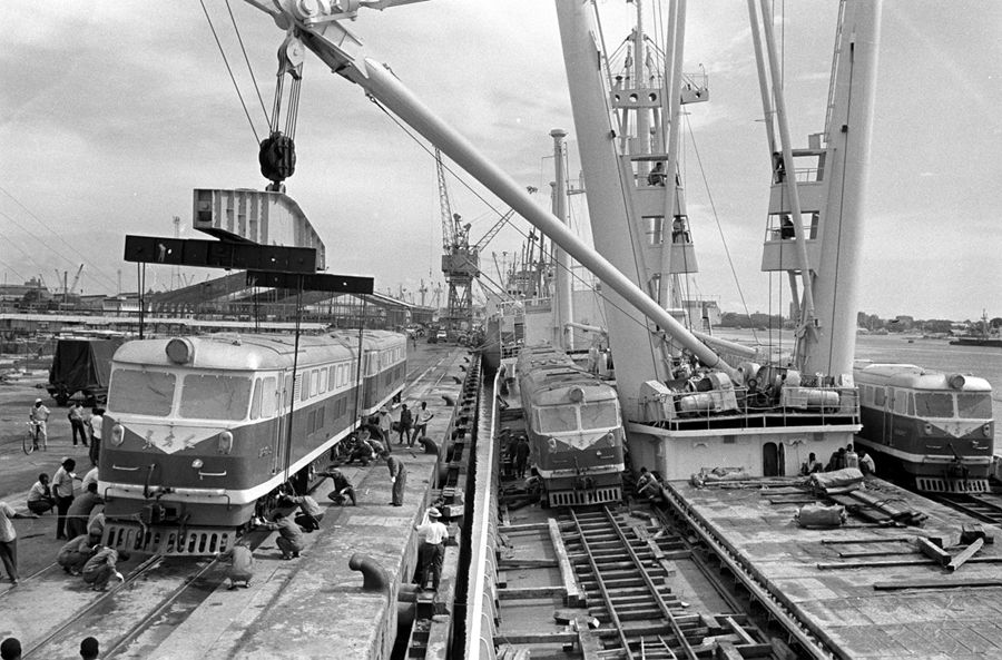 圖為中國援助坦贊鐵路的首批機(jī)車運(yùn)抵坦桑尼亞達(dá)累斯薩拉姆港口。新華社圖片