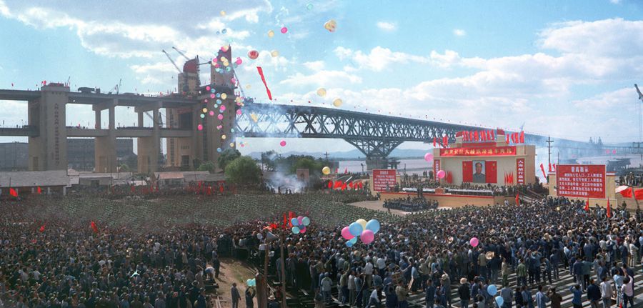 圖為大橋建設者和南京市軍民舉行隆重集會,熱烈慶祝南京長江大橋鐵路橋通車。新華社圖片