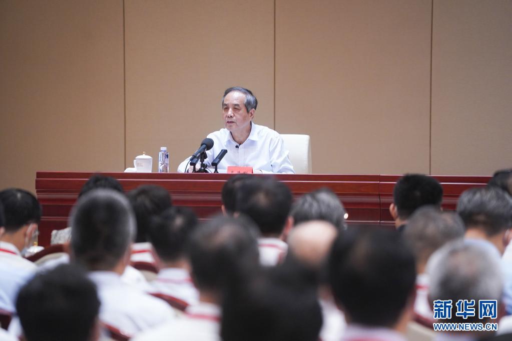 7月15日,黨史學(xué)習(xí)教育中央宣講團(tuán)成員吳德剛在第六場報告會上作宣講報告。新華社記者 陳曄華 攝