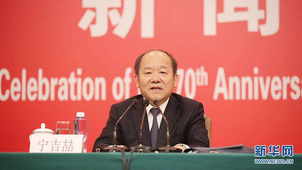 ??? 9月24日,慶祝中華人民共和國成立70周年活動新聞中心在北京梅地亞中心二層新聞發(fā)布廳舉辦第一場新聞發(fā)布會。圖為國家發(fā)展和改革委員會副主任、國家統(tǒng)計局局長寧吉喆介紹相關情況。新華網(wǎng)記者 陳競超 攝