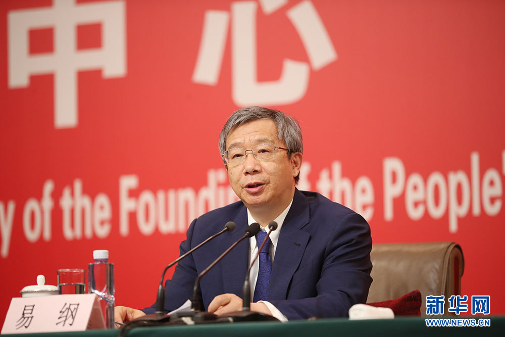 9月24日,慶祝中華人民共和國成立70周年活動新聞中心在北京梅地亞中心二層新聞發(fā)布廳舉辦第一場新聞發(fā)布會。圖為中國人民銀行行長易綱介紹相關(guān)情況。新華網(wǎng)記者 陳競超 攝