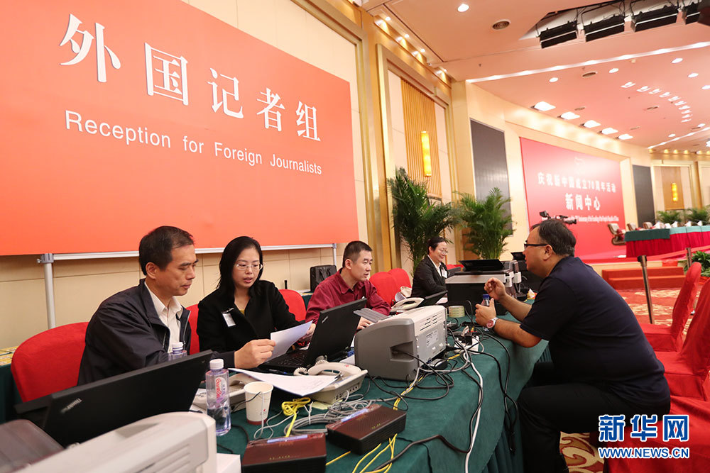 9月24日,慶祝中華人民共和國(guó)成立70周年活動(dòng)新聞中心在北京梅地亞中心二層新聞發(fā)布廳舉辦第一場(chǎng)新聞發(fā)布會(huì)。圖為新聞中心現(xiàn)場(chǎng)。新華網(wǎng) 雷東瑞 攝
