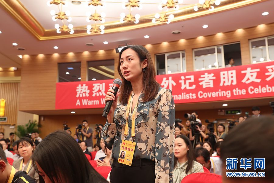 9月29日,慶祝中華人民共和國成立70周年活動新聞中心在北京梅地亞中心二層新聞發(fā)布廳舉辦第五場新聞發(fā)布會。圖為媒體記者提問。新華網(wǎng)記者 郭小天 攝