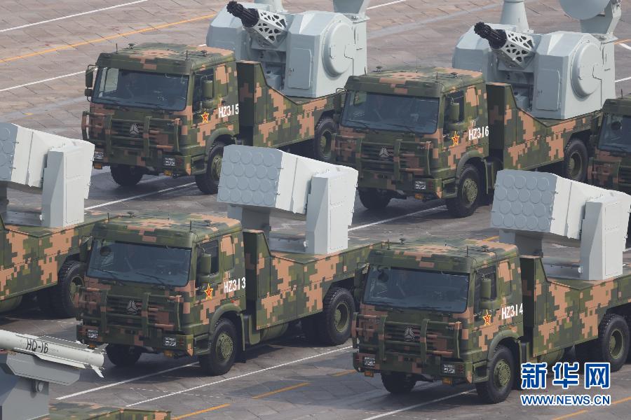 10月1日上午,慶祝中華人民共和國成立70周年大會在北京天安門廣場隆重舉行。這是艦載防空武器方隊(duì)。新華社記者 江宏景 攝