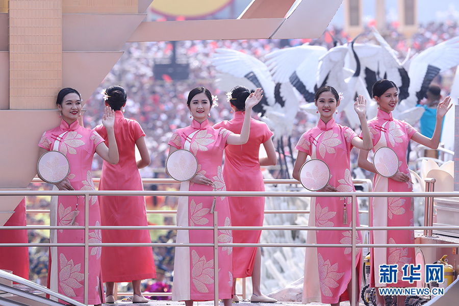 “此次群眾游行方陣?yán)镏袊?guó)文化元素的服裝集中亮相,展示了國(guó)人越來(lái)越自信的風(fēng)貌與氣質(zhì)?!北本┓b學(xué)院服裝藝術(shù)與工程學(xué)院教授鄒游說。