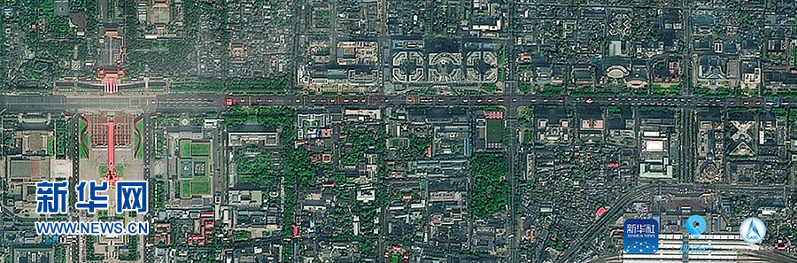 這是“高分1號(hào)”拍攝的群眾游行開始前的北京長安街(10月1日攝)。 10月1日上午,慶祝中華人民共和國成立70周年大會(huì)在北京天安門廣場隆重舉行。新華社聯(lián)合多家單位調(diào)用多顆國產(chǎn)衛(wèi)星俯瞰閱兵,從“最高機(jī)位”發(fā)回這三張珍貴的長安街全畫幅衛(wèi)星圖。 新華社發(fā)(中國資源衛(wèi)星應(yīng)用中心提供)