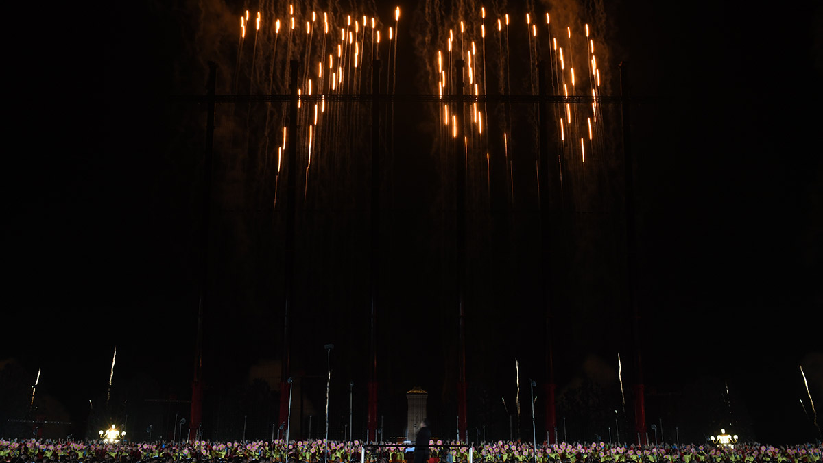 盛裝的天安門廣場,五星紅旗迎風招展。從盛大的國慶閱兵到歡樂的群眾游行,轟鳴的禮炮、嘹亮的口號、鏗鏘的步履、喧天的鑼鼓、紛飛的氣球、自信的歡歌……生動的畫面?zhèn)飨蛭逯蓿瑲g樂的笑臉感染世界。