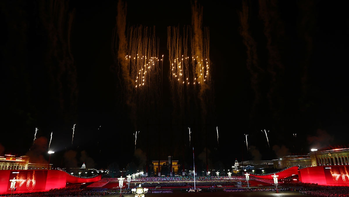 一組組令人驚嘆的數(shù)據(jù)、一聲聲真摯動人的祝福,展現(xiàn)出一個民族繁榮昌盛、繼往開來的光明前景,昭示了實現(xiàn)偉大復興夢想的美好未來。