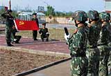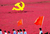 遼寧邊防官兵紅海灘上打造巨幅“黨旗”