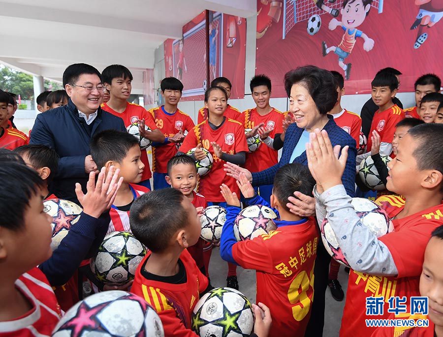 12月11日,中共中央政治局委員、國務院副總理、中央代表團副團長孫春蘭率中央代表團二分團,帶著以習近平同志為核心的黨中央的親切關(guān)懷和全國人民的美好祝福,赴防城港看望慰問各族各界干部群眾,共同慶祝廣西壯族自治區(qū)成立60周年。這是孫春蘭在東興市足球訓練基地與青少年足球運動員交流。 新華社記者 申宏 攝