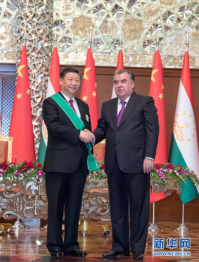 習(xí)近平表示,拉赫蒙總統(tǒng)授予我“王冠勛章”,飽含著全體塔吉克斯坦人民對中國人民的深情厚誼,我對此十分珍視。我愿同拉赫蒙總統(tǒng)一道,推動中塔全面戰(zhàn)略伙伴關(guān)系不斷邁上新臺階,更好造福兩國人民。