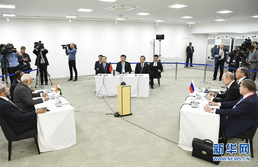 6月28日,國家主席習(xí)近平在大阪出席中俄印領(lǐng)導(dǎo)人會(huì)晤,同俄羅斯總統(tǒng)普京、印度總理莫迪就當(dāng)前國際形勢(shì)、重大國際和地區(qū)問題、三方合作深入交換意見。 新華社記者 謝環(huán)馳 攝