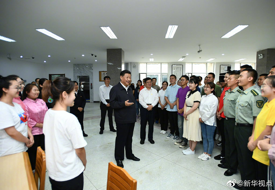 16日上午,正在內(nèi)蒙古考察調(diào)研的習(xí)近平總書記來到內(nèi)蒙古大學(xué),走進(jìn)圖書館同學(xué)生們親切交談。習(xí)近平指出,少年強(qiáng)則中國強(qiáng)??吹侥昵嗳私】德斆?、奮發(fā)向上,充滿正能量,心里十分高興。長江后浪推前浪,青出于藍(lán)而勝于藍(lán),未來是屬于年青人的。在中華民族偉大復(fù)興的進(jìn)程中,你們生逢其時(shí),何其幸也。再過30年,到本世紀(jì)中葉實(shí)現(xiàn)第二個(gè)百年奮斗目標(biāo)的時(shí)候,你們正好是國家的骨干和棟梁。大家要志存高遠(yuǎn)、腳踏實(shí)地,學(xué)好知識(shí),打好基礎(chǔ),增長才干,將來為中華民族偉大復(fù)興貢獻(xiàn)自己的智慧和力量。 (文字:張曉松、朱基釵 攝影:謝環(huán)馳、李學(xué)仁)