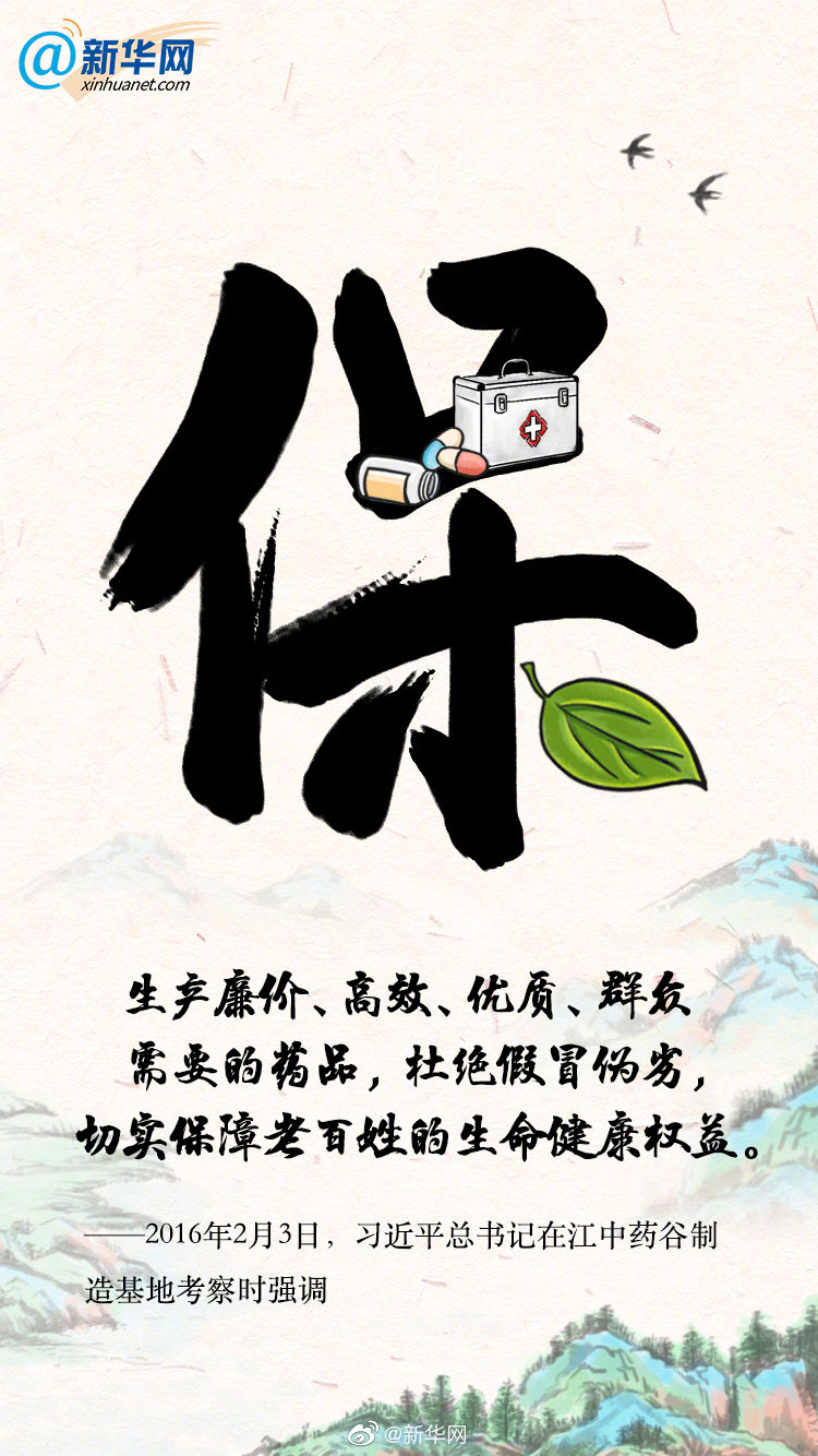 2016年2月3日,習近平總書記在江中藥谷制造基地考察時強調,醫(yī)療保健是全面建成小康社會的重要方面,要下大氣力抓好,生產廉價、高效、優(yōu)質、群眾需要的藥品,杜絕假冒偽劣,切實保障老百姓的生命健康權益。
