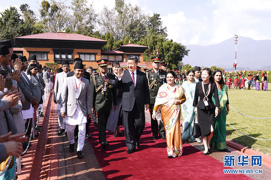 班達里在機場為習近平舉行隆重歡送儀式。尼泊爾副總統(tǒng)普恩、總理奧利、聯(lián)邦議會聯(lián)邦院主席蒂米爾西納、所有內閣成員、軍方高級將領參加。