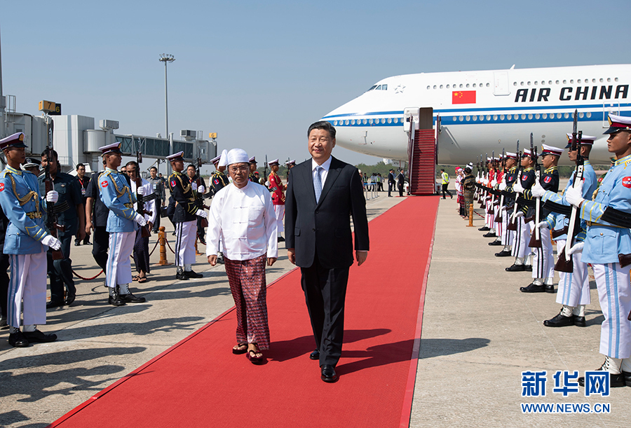 當(dāng)?shù)貢r(shí)間1月17日下午,國(guó)家主席習(xí)近平乘專機(jī)抵達(dá)內(nèi)比都國(guó)際機(jī)場(chǎng),開(kāi)始對(duì)緬甸聯(lián)邦共和國(guó)進(jìn)行國(guó)事訪問(wèn)。習(xí)近平抵達(dá)時(shí),緬甸第一副總統(tǒng)敏瑞率多名內(nèi)閣部長(zhǎng)在舷梯旁熱情迎接。 新華社記者 謝環(huán)馳 攝