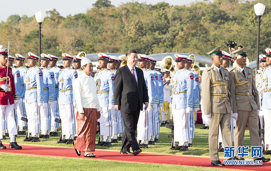 新華社內(nèi)比都1月17日電(記者蔣國鵬)當(dāng)?shù)貢r(shí)間1月17日下午,國家主席習(xí)近平在內(nèi)比都總統(tǒng)府出席緬甸總統(tǒng)溫敏舉行的隆重歡迎儀式。