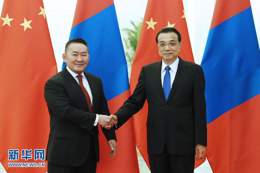 2月27日,國務(wù)院總理李克強(qiáng)在北京人民大會(huì)堂會(huì)見蒙古國總統(tǒng)巴特圖勒嘎。 新華社記者 劉彬 攝