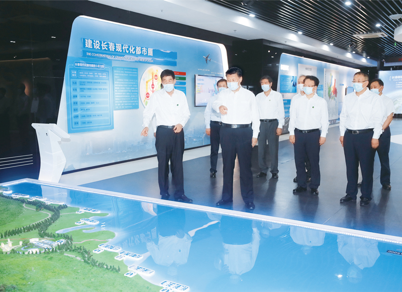 2020年7月22日至24日,中共中央總書記、國家主席、中央軍委主席習(xí)近平在吉林省考察。這是7月23日下午,習(xí)近平考察長(zhǎng)春新區(qū)規(guī)劃展覽館,了解新區(qū)規(guī)劃建設(shè)情況。 新華社記者 王曄/攝