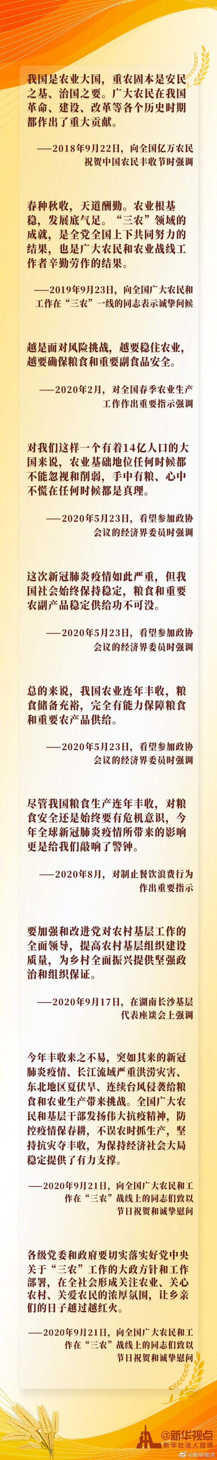 春種秋收,天道酬勤。今天是第三個中國農民豐收節(jié),一起重溫習近平總書記關注農業(yè),關心農村,關愛農民的金句。