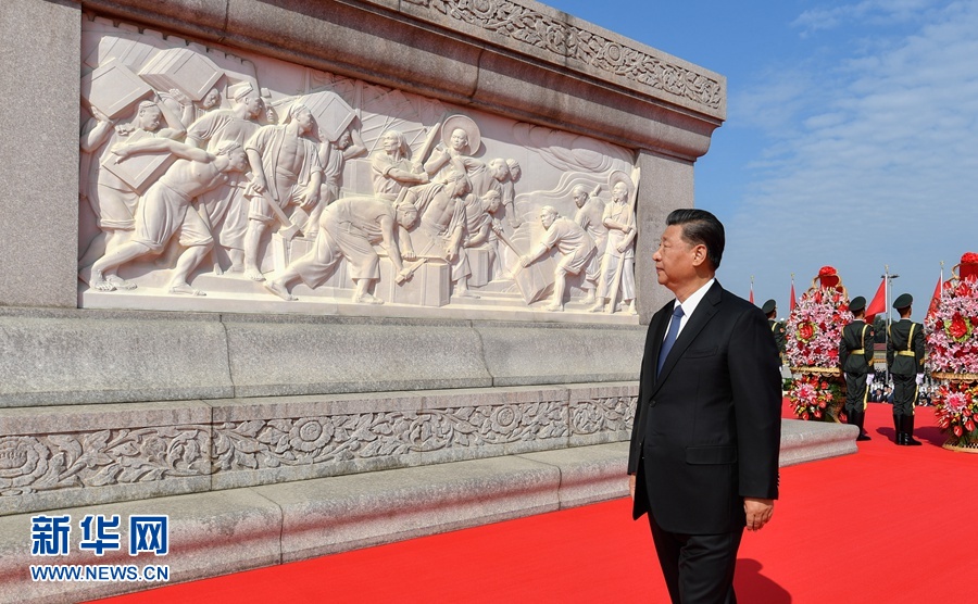 9月30日上午,黨和國(guó)家領(lǐng)導(dǎo)人習(xí)近平、李克強(qiáng)、栗戰(zhàn)書(shū)、汪洋、王滬寧、趙樂(lè)際、韓正、王岐山等來(lái)到北京天安門(mén)廣場(chǎng),出席烈士紀(jì)念日向人民英雄敬獻(xiàn)花籃儀式。這是習(xí)近平瞻仰人民英雄紀(jì)念碑。 新華社記者 岳月偉 攝