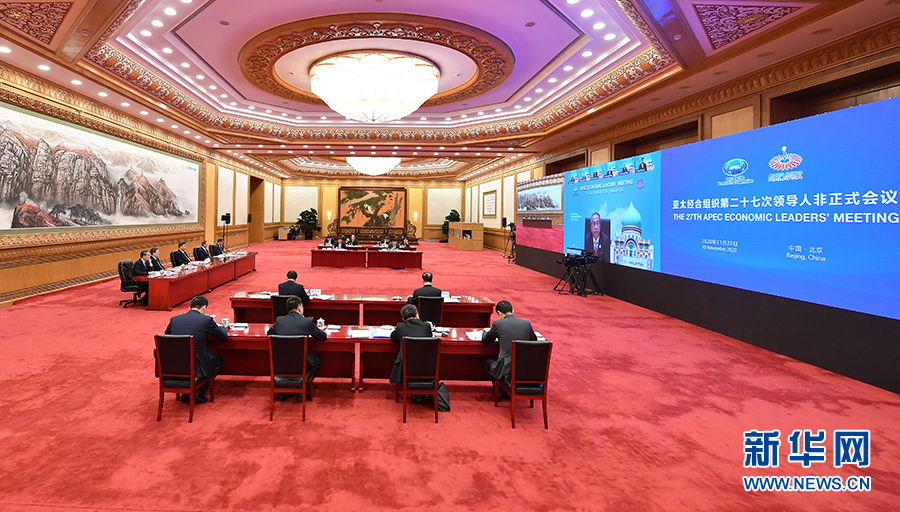 11月20日晚,國家主席習(xí)近平在北京以視頻方式出席亞太經(jīng)合組織第二十七次領(lǐng)導(dǎo)人非正式會(huì)議并發(fā)表重要講話。 新華社記者 李響 攝