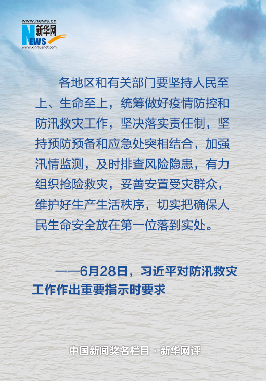 要堅持人民至上、生命至上。人民高于一切,生命重于泰山。無論防控疫情,還是抗洪搶險,都要切實把確保人民生命安全放在第一位落到實處。在做好疫情防控的同時,一定要有力組織搶險救災(zāi),強化應(yīng)急搶險人員轉(zhuǎn)移安置,落實基層轉(zhuǎn)移避險的責(zé)任,細化避險轉(zhuǎn)移預(yù)案,在需要的時候果斷轉(zhuǎn)移有危險的群眾,妥善安置受災(zāi)群眾,千方百計減少人員傷亡。