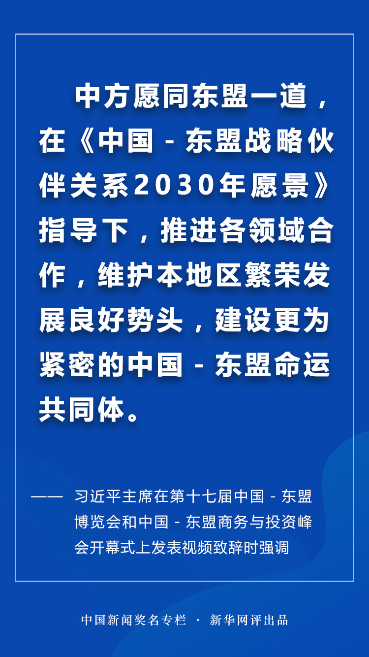 凡益之道,與時偕行。中國和東盟山水相連、血脈相親,友好關系源遠流長。近年來,雙方互聯(lián)互通不斷加速,經(jīng)濟融合持續(xù)加深,經(jīng)貿合作日益加快,人文交往更加密切,中國-東盟關系成為亞太區(qū)域合作中最為成功和最具活力的典范,成為推動構建人類命運共同體的生動例證。新冠肺炎疫情發(fā)生以來,中國和東盟同舟共濟、共克時艱,攜手抗擊疫情,積極推動經(jīng)濟復蘇,今年前10個月雙方貿易額同比增長7%,實現(xiàn)雙方互為第一大貿易伙伴的歷史性突破。