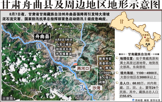 舟曲縣位于甘肅南部,甘南藏族自治州東南部,東鄰武都縣,北接宕昌縣,西南與迭部縣、文縣和四川省九寨溝縣接壤。全縣總面積3010平方公里,轄20個(gè)鄉(xiāng)、2個(gè)鎮(zhèn),210個(gè)行政村,總?cè)丝?3.47萬人,其中藏族4.4萬人,占32.78%。 舟曲縣地處南秦嶺山區(qū),東南至西北走向的岷山山系貫穿全境。氣候?qū)贉嘏瘞^(qū),海拔高度在1173-4504米之間。地勢西北高,東南低,地形復(fù)雜,溝壑縱橫,高低懸殊,是典型的高山峽谷區(qū),氣候垂直變化明顯,常有“山下桃花盛開,山上白雪皚皚”的自然景觀,同時(shí)也表現(xiàn)出“十里不同天,一山有四景”的氣候特點(diǎn)。春季溫暖回升快而穩(wěn),秋季溫涼陰雨多。年均降水量400-800毫米,年日照時(shí)數(shù)1842小時(shí),冬無嚴(yán)寒,夏無酷暑,素有”隴上桃花源”之稱。 |