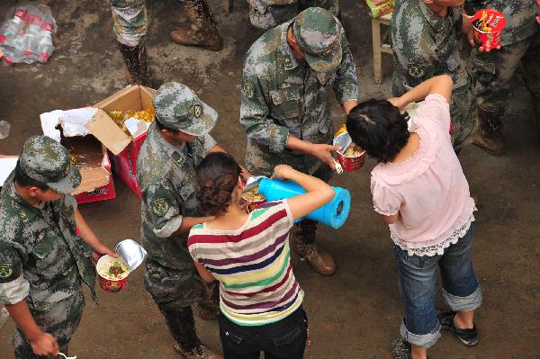 甘肅成縣災區(qū)救援人員的午餐