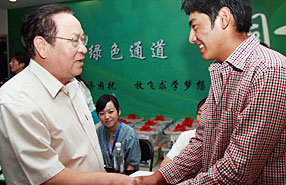 清華大學(xué)校長(zhǎng)顧秉林迎接玉樹(shù)新生尕瑪朋措