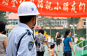 天津中小學(xué)開(kāi)學(xué) 校園保安帶4斤裝備上崗