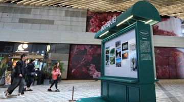 5月11日,观众在展出现场参观拍摄“金宝地花卉纹斗篷”。