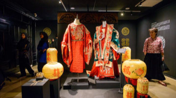 12月9日,西洛在合作社展览厅查看和同事们一起制作的西藏传统面具。