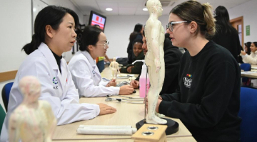 胡昕在为学生们讲解金漆镶嵌屏风的创作技艺(12月10日摄)。
